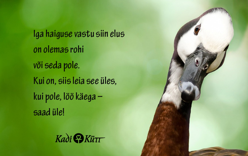 Ma tahaksin innustada sind ses tõsises eluvõitluses olema ka parajalt lapsemeelne. Laps ju usub ja usaldab! Kui minu elus oli paarkümmend aastat tagasi tõsine kriis ja sihid tolmuks pudenenud, tegin midagi, mida olin varem rumalaks ja naiivseks pidanud: riputasin vannitoa peeglile salmi “Haneema laulukesest”. See aitab mind vahel nüüdki! Tee sinagi üks paus, lase end lõdvaks, hinga rahulikult ja ümise endamisi rõõmsat laulukest. Nii on palju lihtsam maailmakõiksuse heatahtlikkusse uskuda.